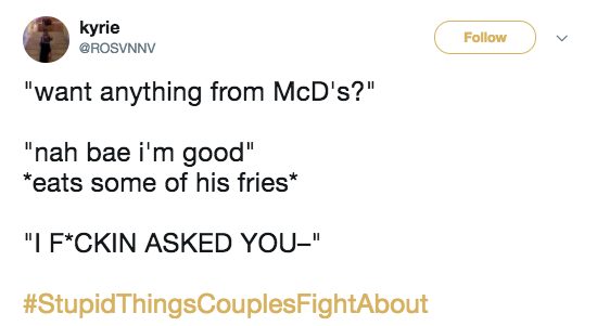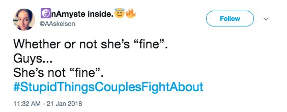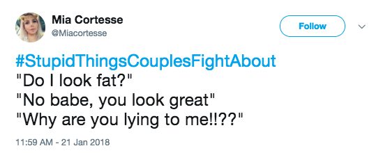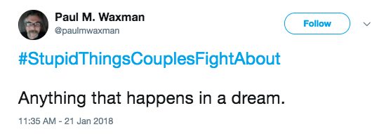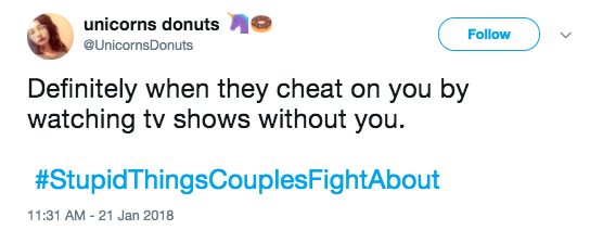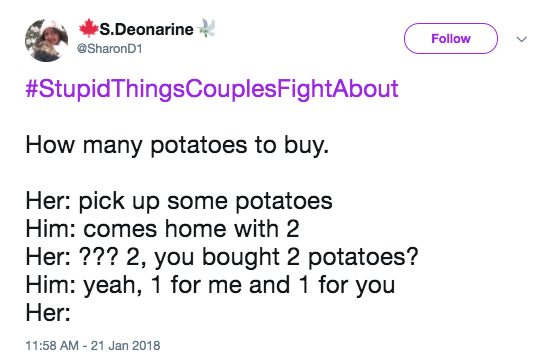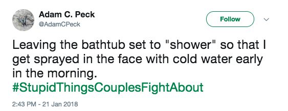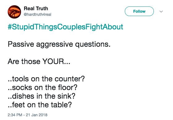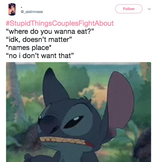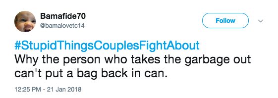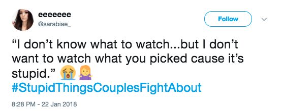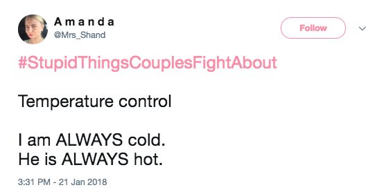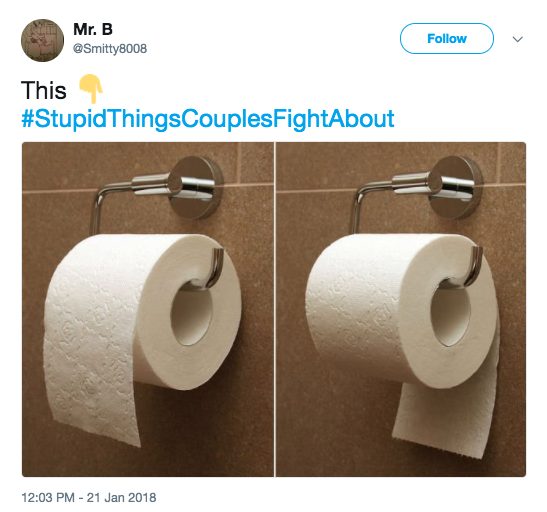 There are the big ones, like about family, kids, or money, but there are also bound to be some fights about the little things, too. Our little disagreements can seem so trivial and ridiculous from the outside, and they usually are! But that’s part of what makes us unique. Here are 25 of the most hilarious petty disagreements under #StupidThingsCouplesFightAbout .